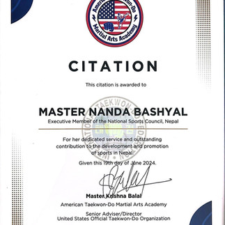 Mrs. Bashyal's contributions extend beyond her athletic prowess. She serves as an Executive Board Member of the Nepal Sports Council, the government body responsible for promoting sports and the wellbeing of athletes in Nepal. Additionally, she holds the positions of Vice President of the Nepal Sports Federation and President of the Taekwondo Women Empowerment Committee, demonstrating her commitment to advancing sports and empowering women within the field.